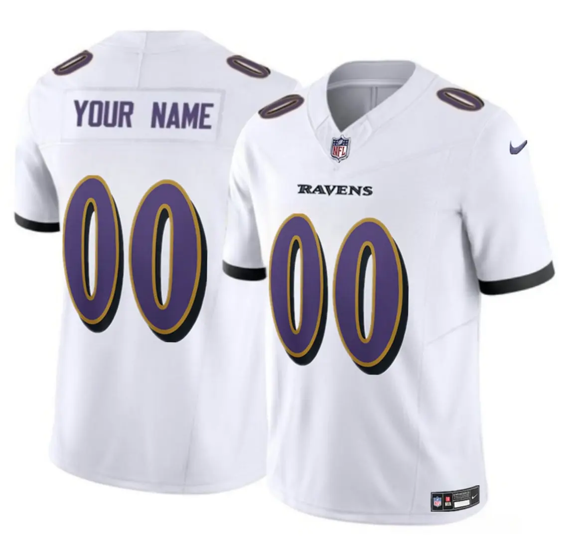Showcase your unwavering team pride with this premium Baltimore Ravens Custom White Alternate Limited Jersey. Designed for the dedicated fan, this high-quality garment features professional-grade stitched nameplates and numbers, ensuring a clean and durable look that mirrors the pros. The crisp white colorway offers a modern twist on classic game-day attire, while the athletic fit provides a comfortable feel whether you are at the stadium or hosting a watch party. Fully customizable with your preferred name and number, this jersey delivers a personalized touch to your collection. Experience superior craftsmanship and breathable performance fabric that keeps you cool during every touchdown celebration.