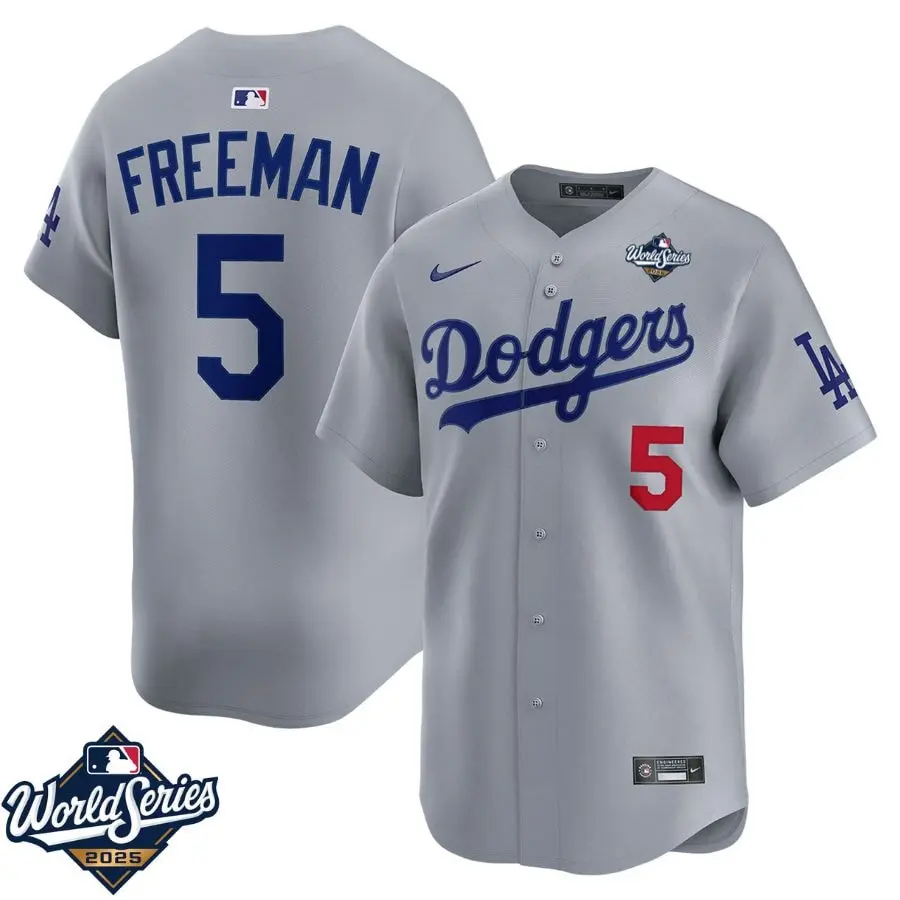 Celebrate the Dodgers’s championship journey with the Freddie Freeman Dodgers Gray Road Limited 2025 World Series Jersey Stitched. This gray jersey features stitched name, numbers, and a 2025 World Series patch, showcasing both style and pride. Crafted for comfort and durability, it’s perfect for loyal fans who want to represent their team and favorite player during an unforgettable season.