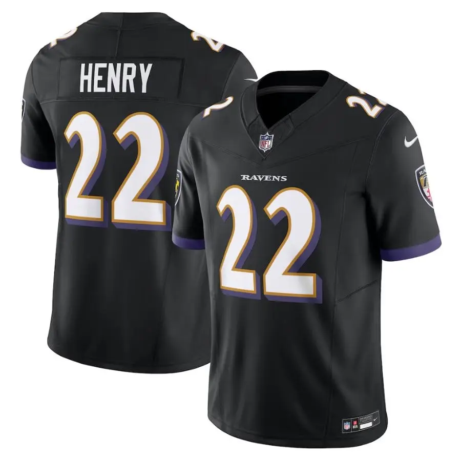 Elevate your game day wardrobe with this premium Baltimore Ravens jersey featuring star running back Derrick Henry. This black Vapor Limited edition is meticulously crafted for the ultimate fan experience, boasting high-quality stitched name and numbers for long-lasting durability and a professional look. The sleek design incorporates performance-driven fabrics that offer a lightweight, breathable feel whether you are in the stands or on the move. With its tailored fit and intricate detailing, this jersey perfectly captures the intensity of the gridiron. Show your support for Baltimore’s powerhouse offense with a garment designed to withstand every touchdown celebration and season milestone.