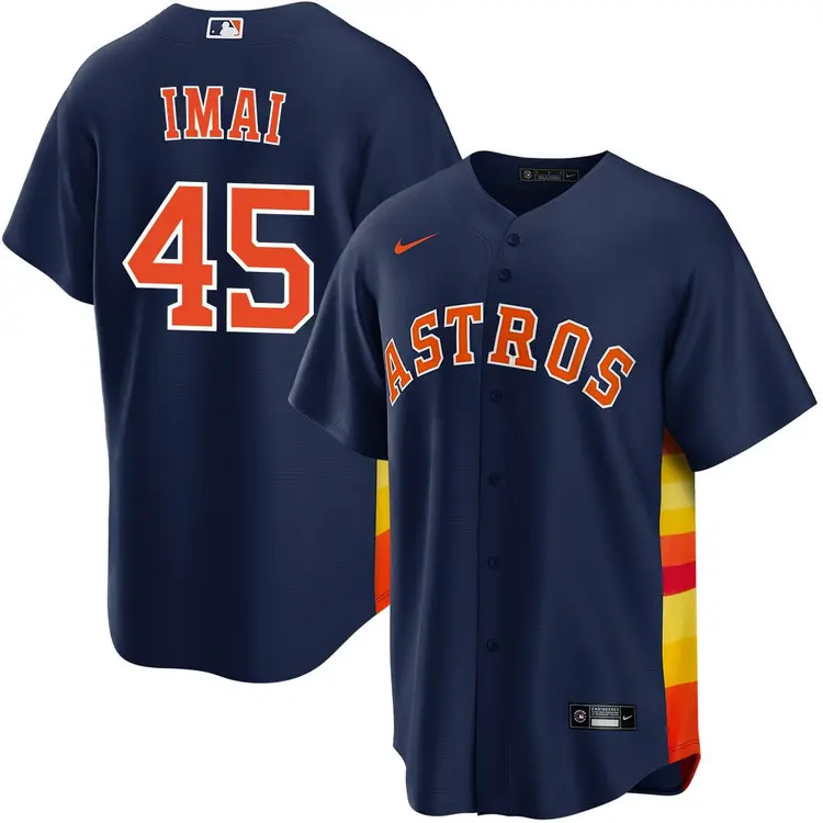 Pay homage to the diamond with this premium Tatsuya Imai Houston Astros alternate jersey in deep navy. This high-quality garment features meticulously stitched lettering and numbering, ensuring a professional look and long-lasting durability. Crafted from breathable, moisture-wicking fabric, it provides exceptional comfort whether you are cheering from the stands or playing on the field. The classic button-down design and bold team colors offer a timeless aesthetic for any dedicated fan. Elevate your sports wardrobe with this expertly detailed piece that celebrates elite pitching talent and team pride. It is the perfect addition for those who demand excellence in their athletic apparel.