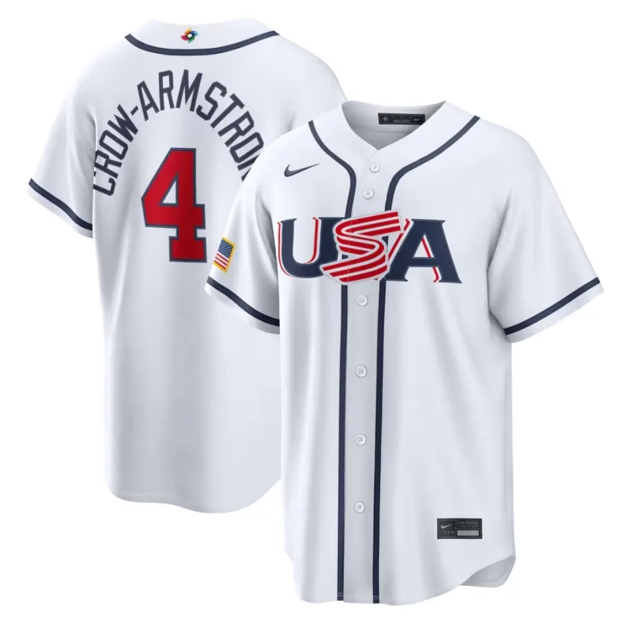 Showcase your support for one of baseball’s brightest rising stars with this premium Pete Crow-Armstrong 2026 World Baseball Classic Home Jersey. Designed in a crisp white colorway, this garment features high-quality stitched lettering and numbers that provide a professional look and long-lasting durability. The breathable, lightweight fabric ensures maximum comfort whether you are cheering from the stadium seats or playing on the diamond. Represent your national pride with a classic athletic fit and meticulous detailing that captures the spirit of international competition. This jersey is an essential addition for any dedicated fan looking to celebrate the next generation of elite talent on the world stage.